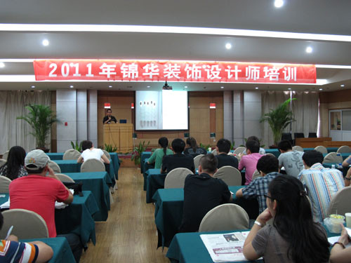 2011年7月22日,錦華裝飾南京大區研發中心專程請來了北京聯合大學姜喜龍老師,為全體設計師作為期一天的專業設計及客戶服務培訓。姜老師在北京多次為東易日盛、元洲等全國性裝飾公司作設計研發顧問,長年游走全國講學。