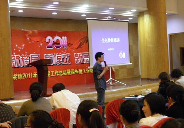 丁總對南京大區前三季度的工作進行了總結,設計費、家裝產值、主材產值都取得了一定的增長;在具體的營銷渠道上,網銷、老客戶、市場活動三箭齊發;推出的全包模式更是取得了一定的突破;我們可以很自豪的說,過去的9個月,我們做的不錯!