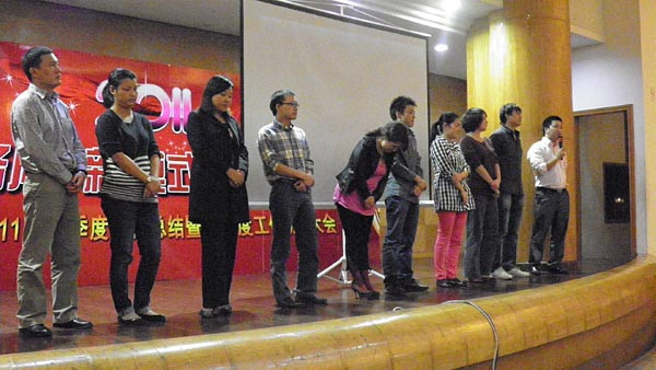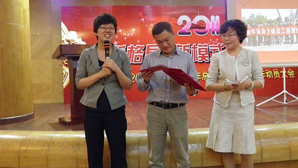 “新格局、新模式、新思路”2011年,南京大區所有的工作都是圍繞這9個字開展;但是所有的錦華人都理解這句話的意思,并在工作中執行了嗎?員工大會一開始,丁總就連續發問,所有的錦華人也都在深思。