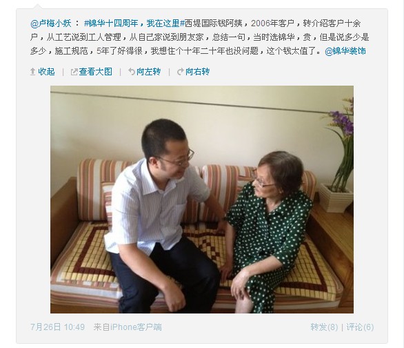 —西堤國(guó)際錢阿姨,06年選擇錦華裝修
