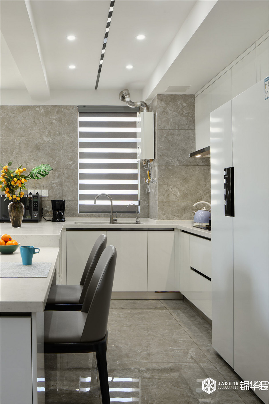 ▲吧臺將餐廳區域與廚房區域隔而不斷,讓空間呈現出不同的層次感,沒有過多阻擋,廚房的光線更加明亮!