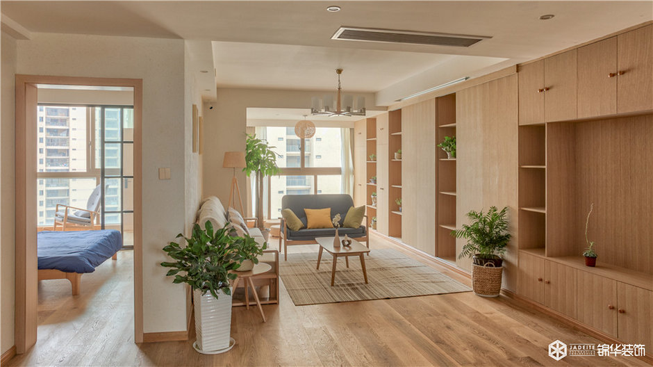 考慮到戶型南北通透,采光較好,在空間中沒有做特別大的改造變動,而是在儲藏等功能上做了不少改動。