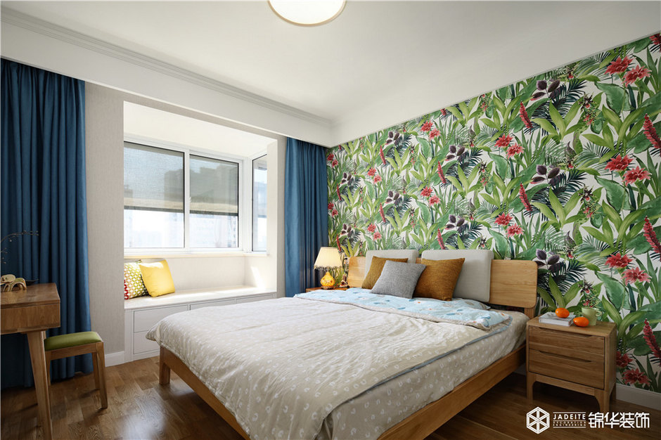 ▲這一面清新的背景墻在空間中起到了畫龍點睛的作用!