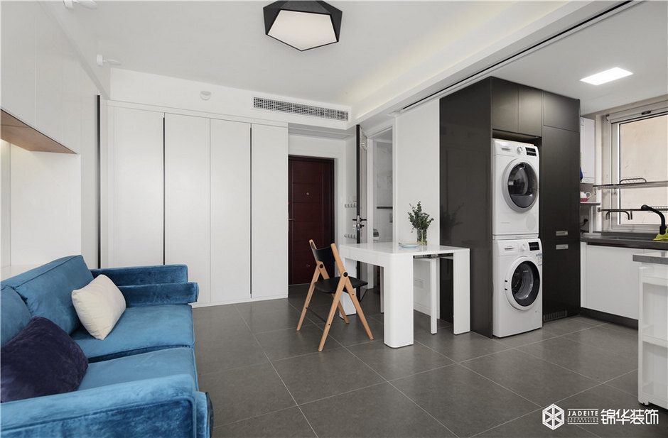 雖然本案是一個只有50平的公寓,但該有的功能全部具備,比如大型綜合儲物柜、全景書房、觀景飄窗閱讀臺、強大功能的廚房。