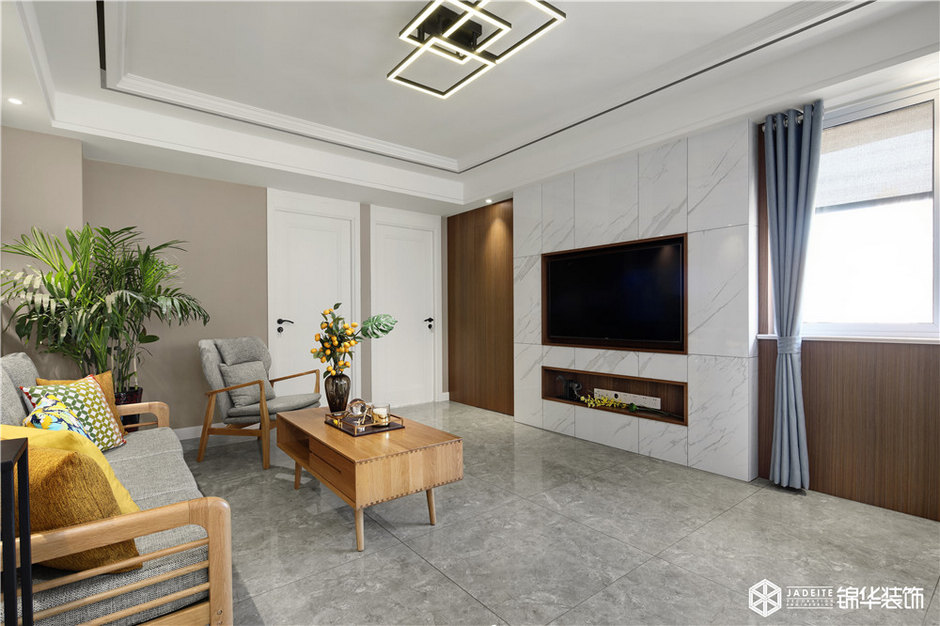 ▲客廳大面積使用木飾面板作為背景,干凈簡潔又不失質感!